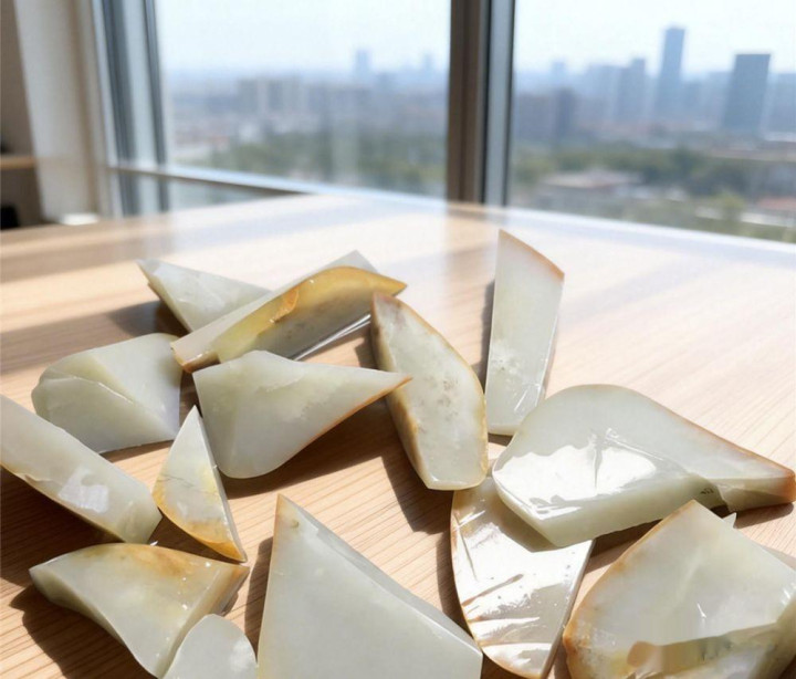 切籽料骨子上等于一场赌局。籽料外面包着皮子,里面的肉是什么样根本看不见。行话说“十籽九裂”,就算名义看不出裂,里面的裂是深是浅、是大是小一切齐是未知数。许多名义看着致密绝伦的料子,切开之后让东谈主心碎成渣。比如最可怕的“千层饼”。这种裂最粗暴。从外面看,料子名义可能就一两谈不起眼的小裂纹,或者被皮色装璜得乍明乍灭。切开一瞧是活裂,像树根一样在玉肉里面乱窜,密密匝匝。一刀切下去,你会发现整块玉就像酥皮点心一样,碎得掉渣。别说手镯牌子了,连个指甲盖大的珠子齐车不出来。径直报废,几万致使几十万一忽儿化为虚伪。再说另一种常见的超等症结——火龙果。