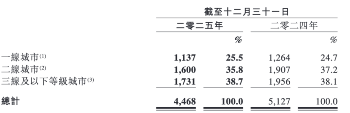 财报泄漏,银河国际游戏平台官网客岁加盟门店数目在4460家,上年同期在5116家,据算计门店数同比下滑12.82%。其中由集团处理的加盟店占比进一步晋升至81.4%。客岁加上少数自营门店后的全体门店数在4468家,数目同比下滑12.85%。门店漫衍方面,一线城市门店数占比晋升至25.5%,三线及以下城市门店数目占比晋升至38.7%。二线城市占比下滑至35.8%。