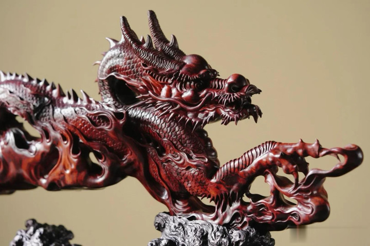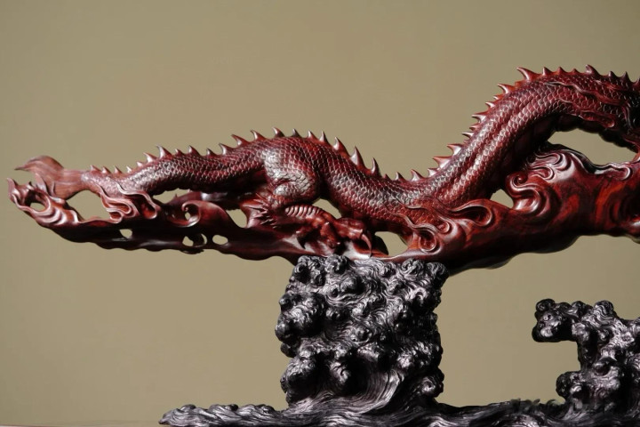 小叶紫檀老料整木整雕,油密度俱佳,光线润好意思典雅,密鳞层层,Z6尊龙凯时劲爪铮铮,身姿筋骨感足且强壮灵动,举座工料俱佳,厅堂成列吉利。