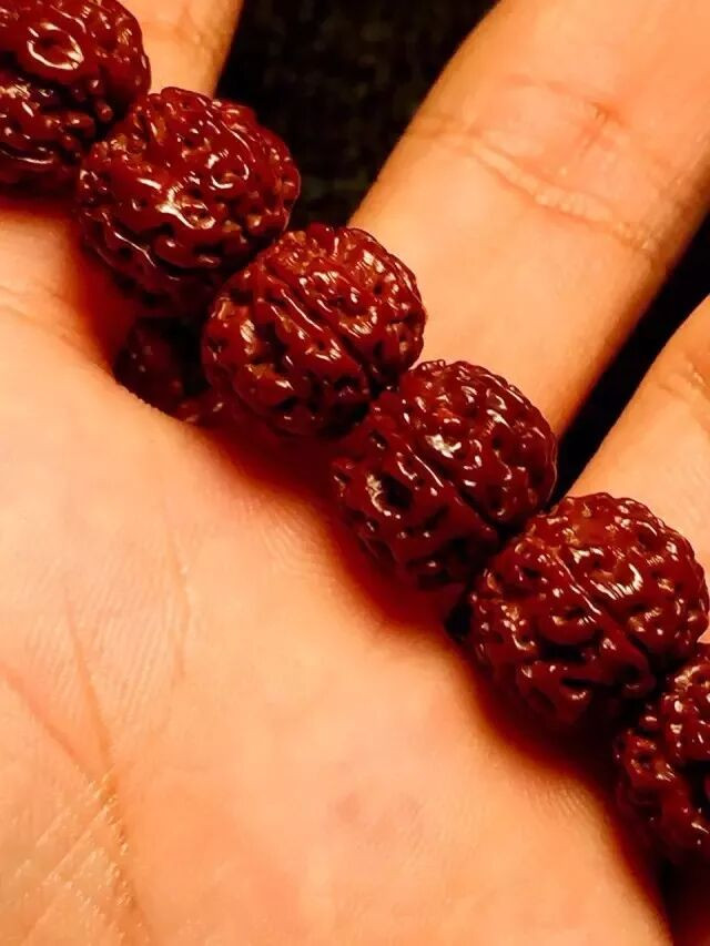 文玩手串最终看法已经要盘出包浆。文玩盘得越漂亮,其价值就越高。尤其是核桃、金刚菩提、星月菩提等树籽类,以及绿松石、南红等玉石类。