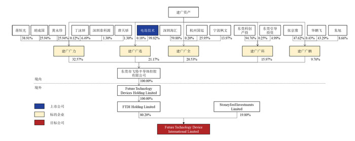 据界面《硬科技头条》本年2月报说念,2021年12月,包括电连时候、华鹏飞等上市公司在内的中资财团,通过东莞飞特开荒的全资孙公司FTDIHL收购英国USB桥接芯片公司FTDI(FutureTechnologyDevicesInternational)80.2%股权,交游金额约4.14亿好意思元;其余19.8%股权仍由创举东说念主团队捏有,并络续主导公司磋商。