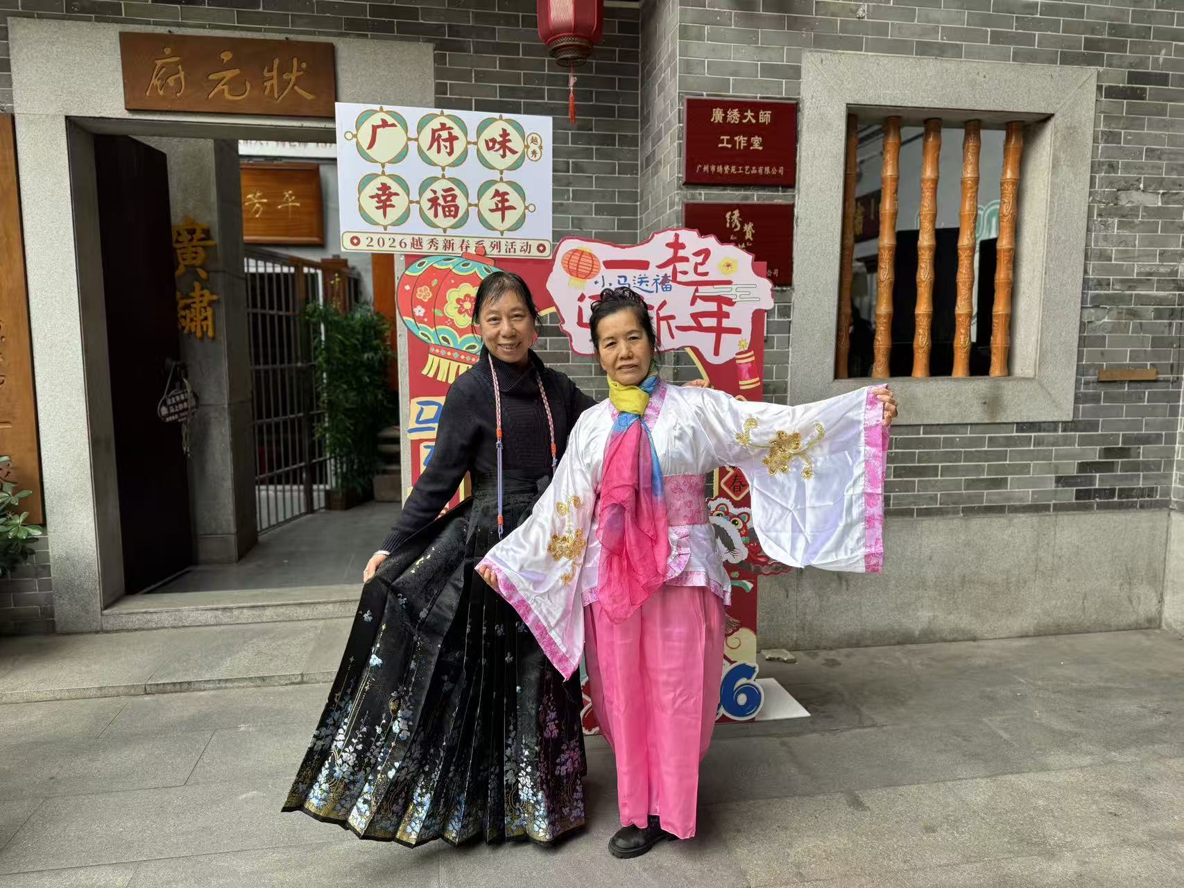 行径现场,身着汉服、旗袍的市民成为全部流动的征象线。他们在独具广府新春特质的打卡点迷恋,展示中华传统衣饰之好意思。广场上笑语欢声,针线翻飞,传统身手与节日喜庆交汇,市民公共徬徨其间,感受“非遗里的广府年味”。