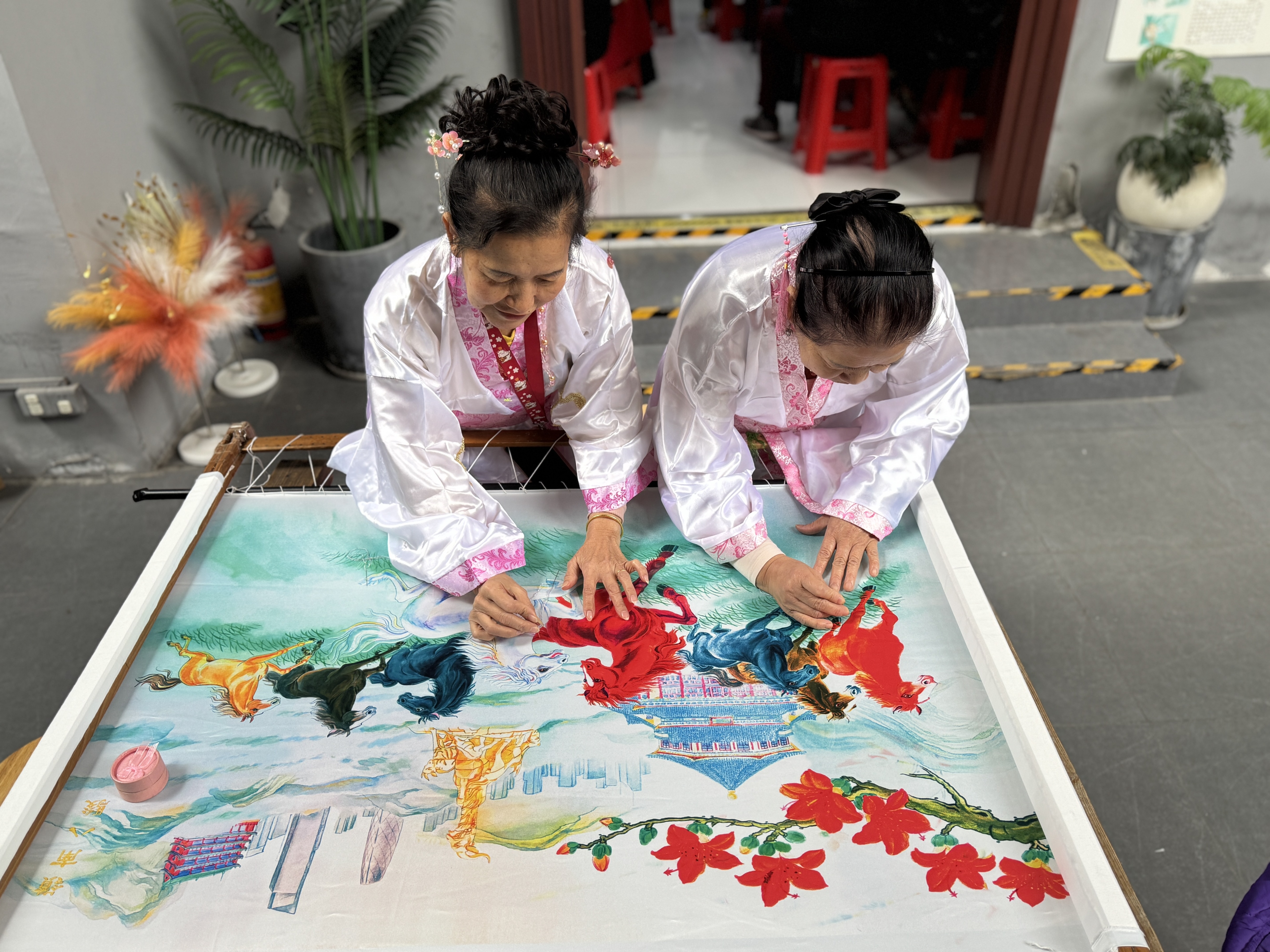广绣算作国度级非物资文化遗产,是广府文化的伏击柬帖。本次行径设备了丰富的互动花样:在广绣非遗传承东谈主的全心教会下,参与者们学习了直针、续针等基础广绣针法,亲手体验了非遗制作的精妙。行径非常设备的广绣《岭南八骏图》制作体验更招引很多住户参与,广绣作品《岭南八骏图》创作台前,身着汉服、旗袍的市民一又友们在非遗传承东谈主教唆下,Z6尊龙凯时官方网站范例参与体验,一草一木间,共同勾画出骏马的强壮神韵与岭南的茁壮不悦,活泼讲明了非遗传承确现代活力。