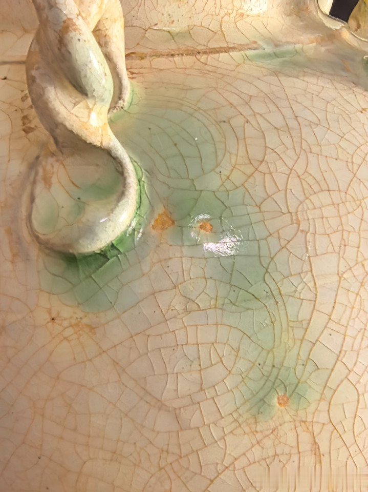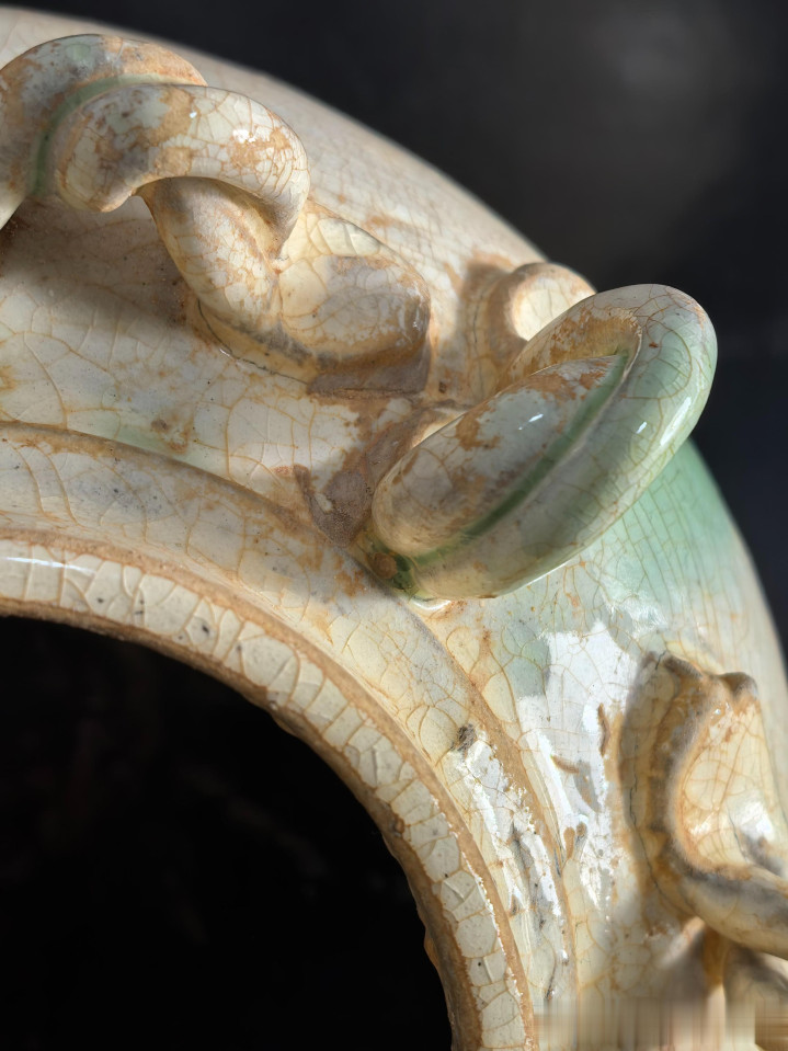 最具不雅赏价值确当属这几笔绿彩。它虽并非青花、五彩,却是中国古代彩瓷发展程度中极为关键的一步。古东谈主的审好意思不雅念向来秉持“少即是多”的原则。这绿彩简略点染,尽显当然超脱之态,毫无匠气雕刻之感。