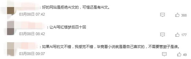 有报谈称,搪塞媒体上的AI写稿暴富噱头,让网文圈变了天。有网文作者坦言,我方日更近万字已是极限,但在AI几分钟几万字眼前,径直被降维打击。驳斥区里,网友人言啧啧,“AI写的著述缺乏乏味,莫得个东谈主情态”“有一册AI文火的吗”……