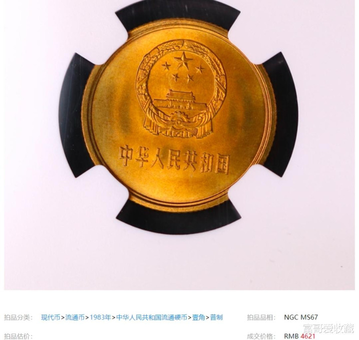 上面这枚1983年的麦穗1角,就拍出了4621元。