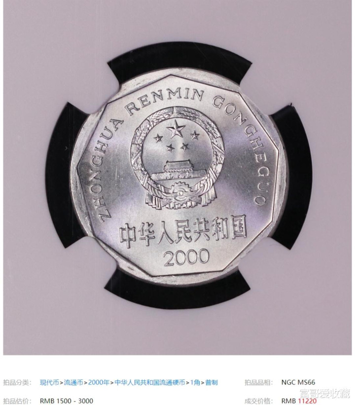 上面这枚2000年的菊花1角,就拍出了11220元。