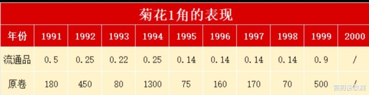 在这些年份当中,最珍稀的菊花1角,是2000年刊行的。